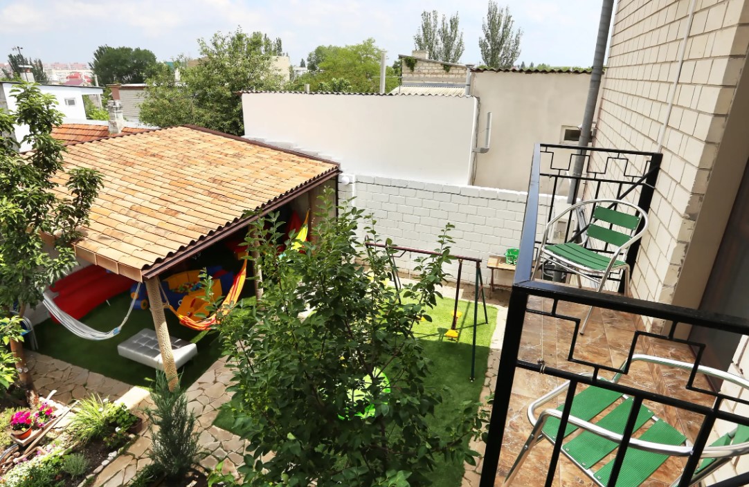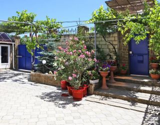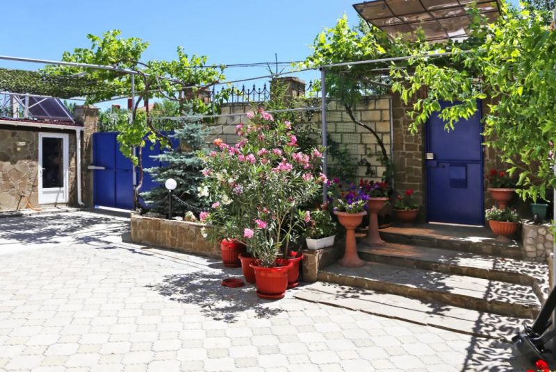 Самолетом до аэропорта г. Симферополя, далее на автобусе №49 до остановки «ГРЭС», далее на автобусе №246-23 до остановки «Железнодорожный вокзал», далее на рейсовом маршрутном такси до остановки «Полтавский рынок», далее на автобусе №5 до остановки «Зерновская улица», далее 101 м до гостевого дома.
